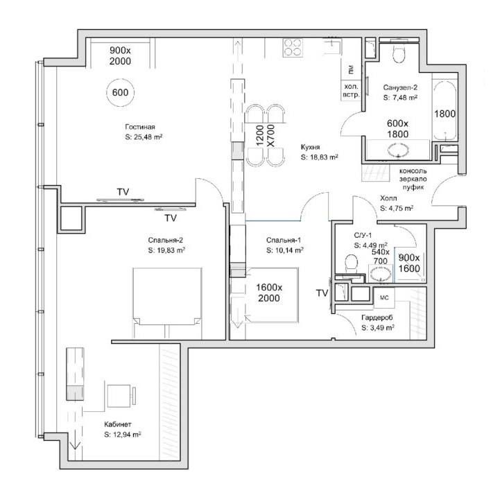 Отделка по индивидуальному дизайн-проекту, включая мебель и текстиль