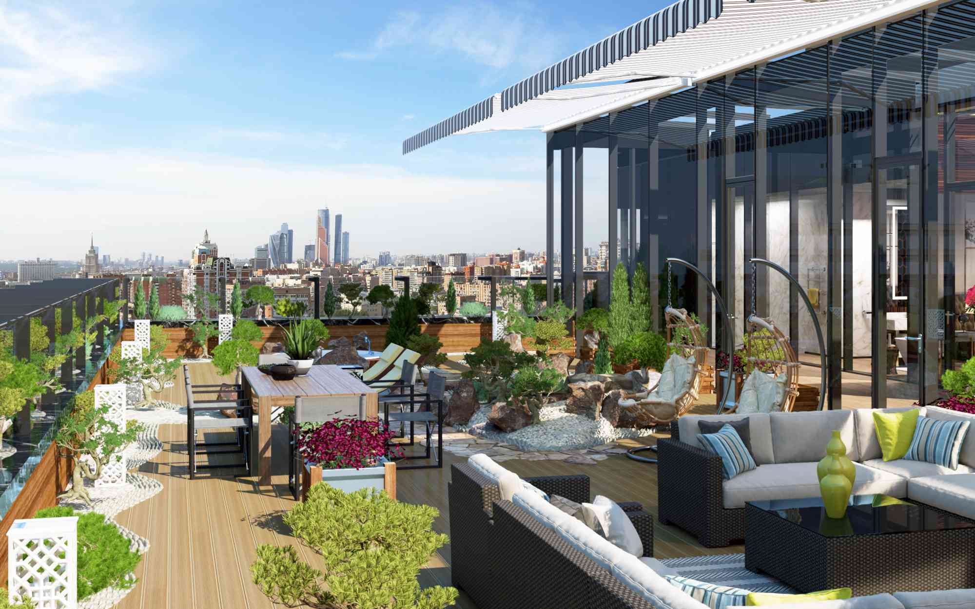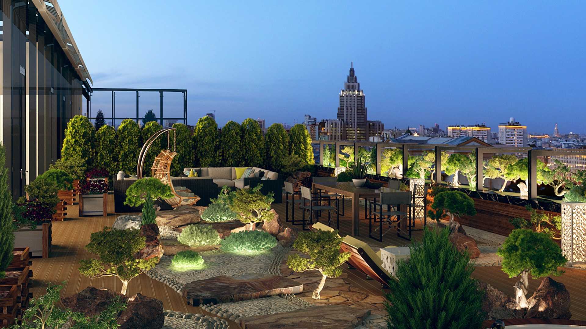 В каждом пентхаусе предусмотрены просторные террасы в стиле японского сада